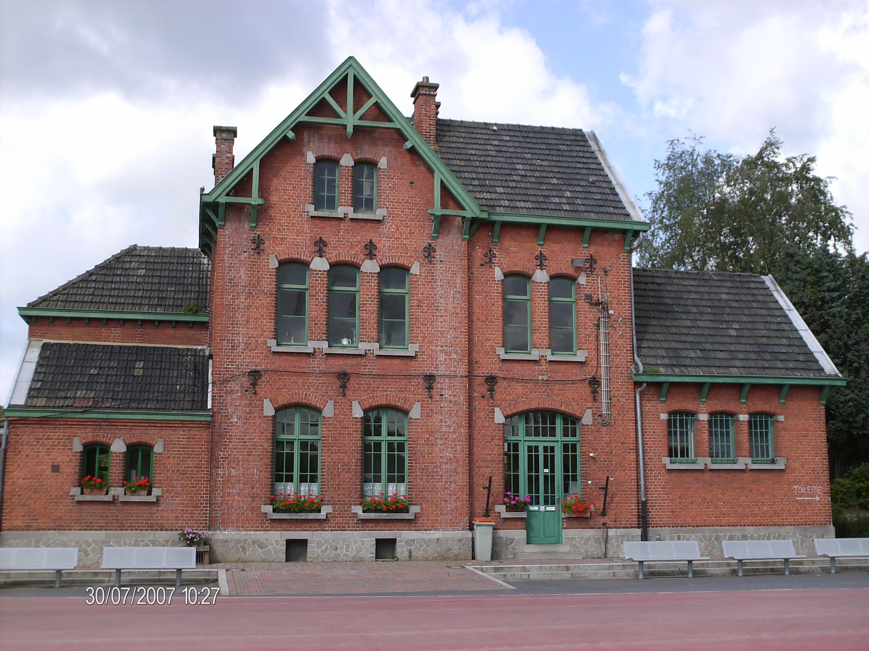 En we zijn weer vertrokken! Het eerste wat we tegenkomen is de oude stationssite van Ellezelles, gelegen op de vroegere lijn 87 Ronse - Lessines. Er is hier nog veel bewaard gebleven: het stationsgebouw en ook de gebouwen op de site van de vroegere tramstelplaats!