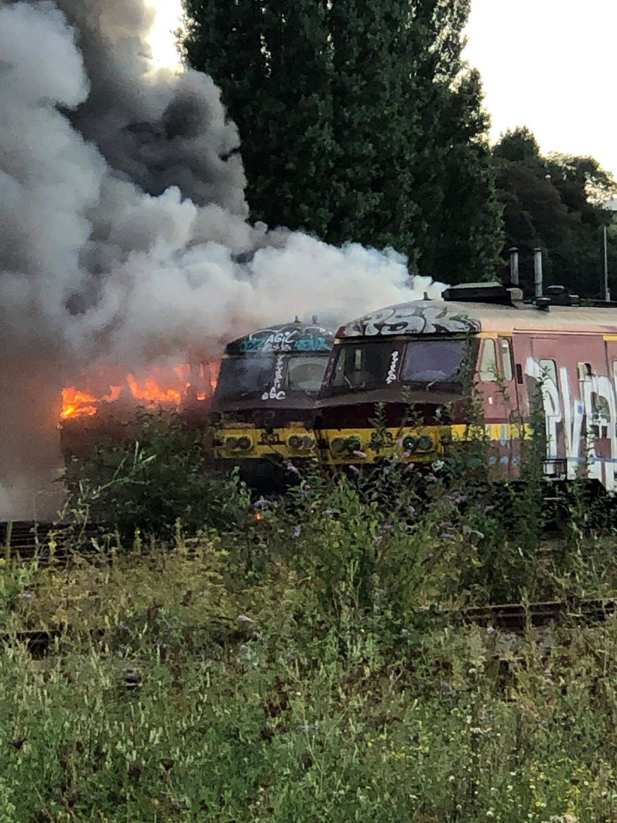 .De Standaard https://www.standaard.be/cnt/dmf20190902_04588214 schreef: Het ging volgens Infrabel-woordvoerder Arnaud Reymann om een oude trein, bestaande uit een viertal wagons, die gesloopt ging worden.