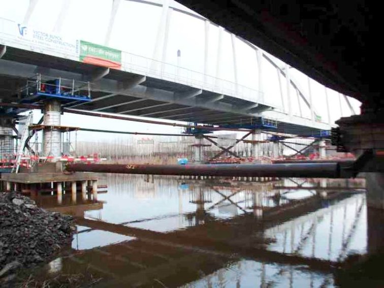 nu ik vaker van Antwerpen naar Brussel spoor kan ik de voortgang der werken volgen. Af en toe rijdt de trein ook op lijn 27. Daar ligt de brug wat lager en bij deze gelegenheid heb ik gezien dat ze betonnen pijlers onder de nieuwe boogbrug aan het aanleggen zijn. Lijkt mij zo een beetje alsof ze ergens bij de stabiliteitsberekening ernaast hebben gezeten??