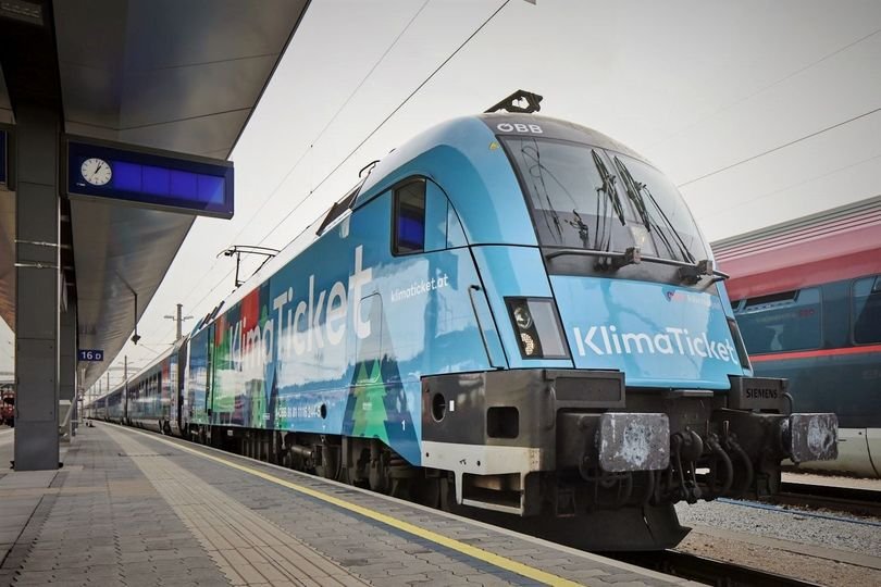 Naar aanleiding van het invoeren van het Klimaticket werd een Railjet met een speciale bestickering voorzien: