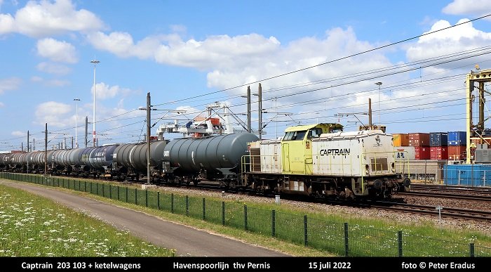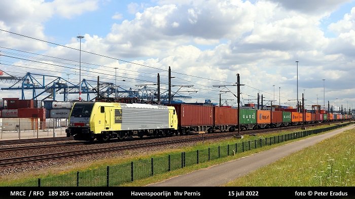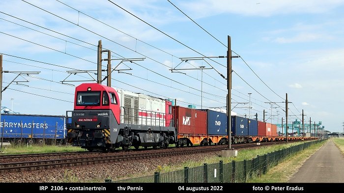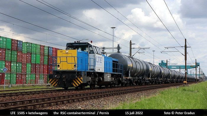 Een mooi beladen Containertrein, getrokken door een LINEAS dieselloc op weg van de Kijfhoek naar de Rotterdamse havens.