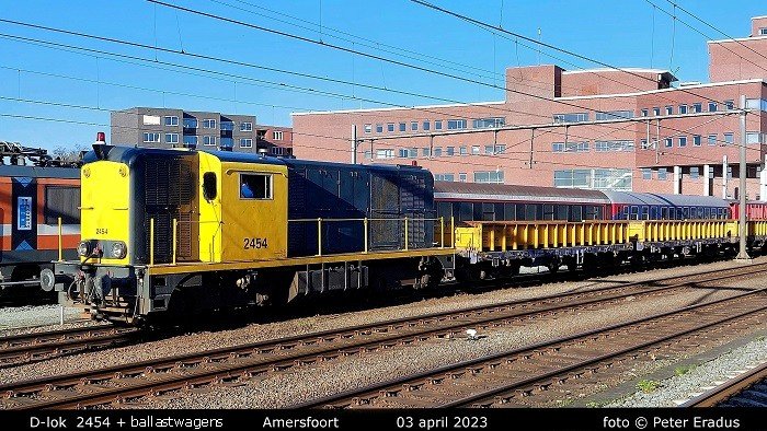 Oude tijden herleefden te Amersfoort met de ex NS 2454 in de rangeerdienst op het plaatselijke emplacement, druk bezig met een aantal lege ballast wagens.