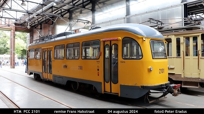 Op de foto de HTM 2101 in de remise Frans Halsstraat.