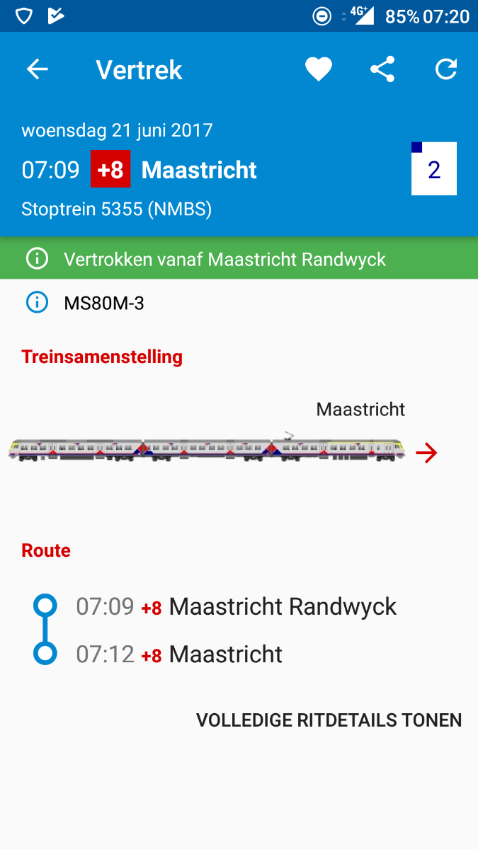 Actutrein toont bij mij zelfs al een tijdje de geplande materieelinzet van binnenlandse treinen in België.Jan-Mark schreef:Breaks en Varkensneuzen zaten al wat langer in o.a. ActutreinHoogstwaarschijnlijk is dit echter alleen maar planmatig, dus bijvoorbeeld een Klassiekje naar Maastricht zal je in de app niet te zien krijgen.