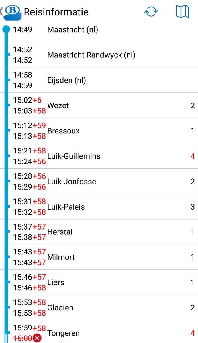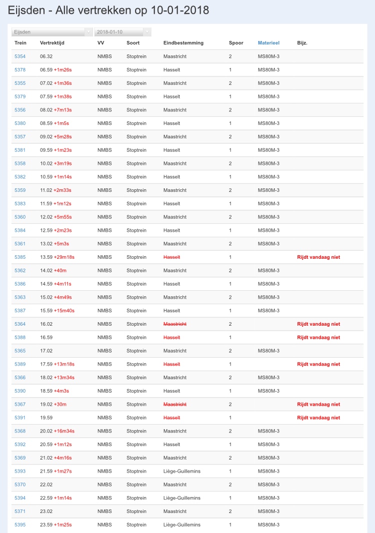 Toevallig op hetzelfde klassiekje gezeten... Was nog op tijd toen ik er mee reisde, en er scheelde niets mee. Misschien 1 of 2 minuten vertraging maar op tijd bij aankomst in Hasselt. De oorzaak was een storing aan meerdere overwegen.Willem.13 schreef: ↑11 jan 2018, 10:34 Ik kwam gisteren per toeval een klassiekje tegen om 14:52 te Maastricht Randwyck, ik ben snel de trap af gesprint om hem op de foto te zetten. De oorzaak was waarschijnlijk een defecte Break want er zijn gisteren ook enkele ritten komen te vervallen op lijn 40. Opvallend is wel dat de Klassiek, als we de NMBS planner moeten geloven, in Wezet 58 min vertraging heeft opgelopen. De oorzaak hiervan is mij niet bekend.