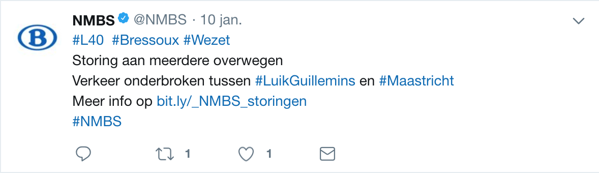 Zoiets moet je consequent aan de NMBS melden. Hoe meer meldingen door verschillende mensen, hoe meer kans dat er iets aan gedaan wordt.BlackEagle schreef: ↑24 dec 2017, 23:32In feite is een varkensneus (4 rijtuigen) tijdens de gewone spits op zaterdag, zoals nu staat ingepland, veel te weinig om al de shoppers van lijn 12 in te krijgen. Vaak zitten die dan overvol, in de namiddag ook nog eens met inkopen die mensen mee naar huis nemen.