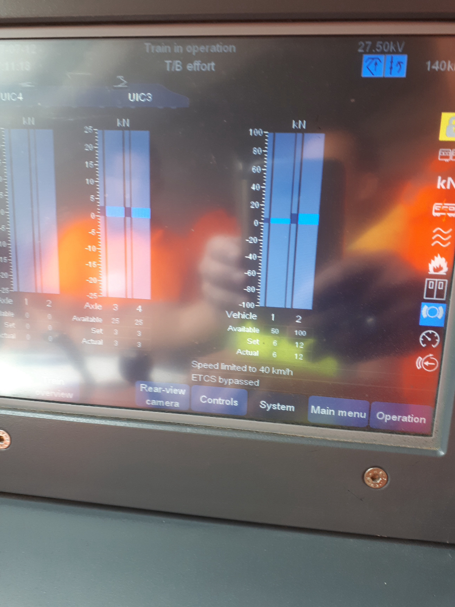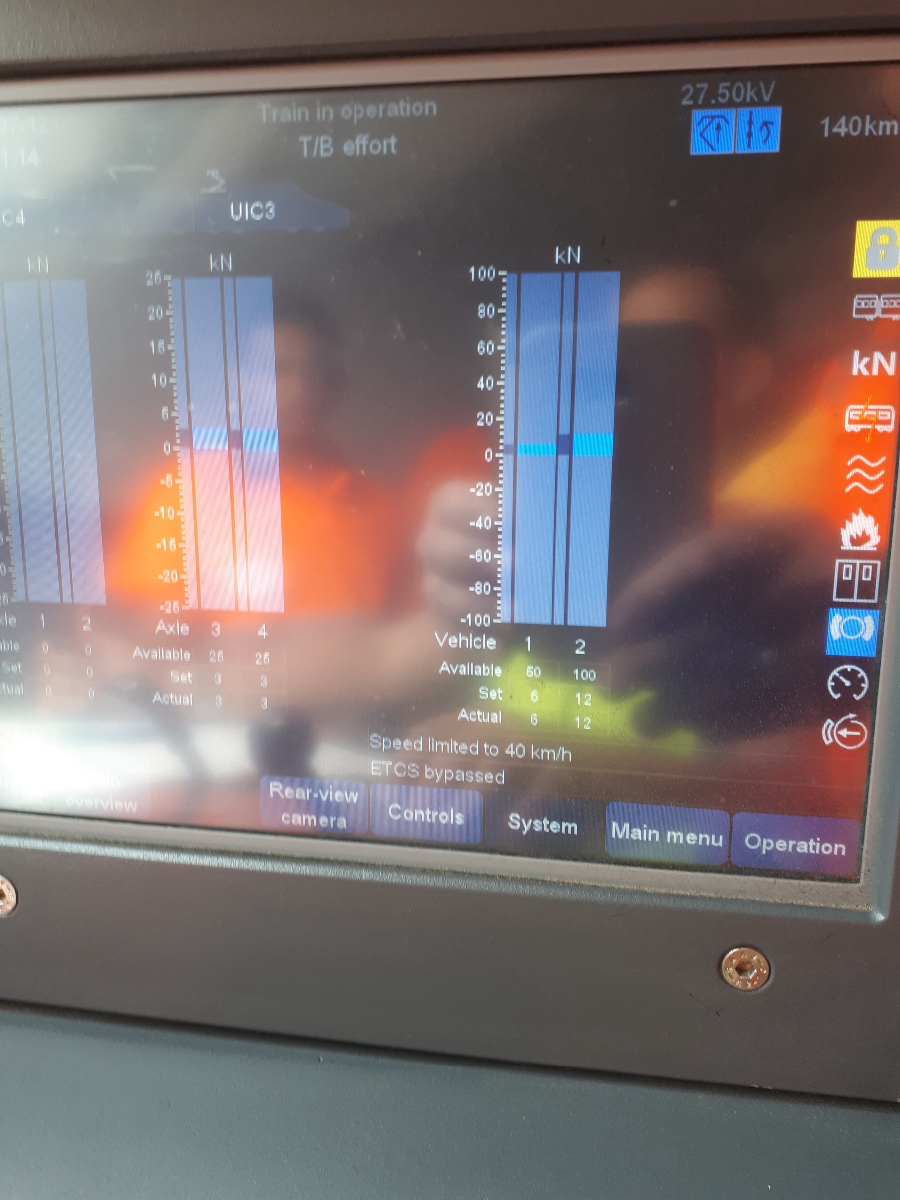 deel 3, hierbij kaartje met lijnprofiel en foto. De foto is genomen op het punt waar we naar beneden duiken aan 200 km per uur en dit voor meer dan 100km, ware het niet dat we gestopt zijn om een andere treinbestuurder te laten rijden. Bedoeling afzink rijden aan 200Km per uur en snelheidsbeheersing aan neutrale secties enz.