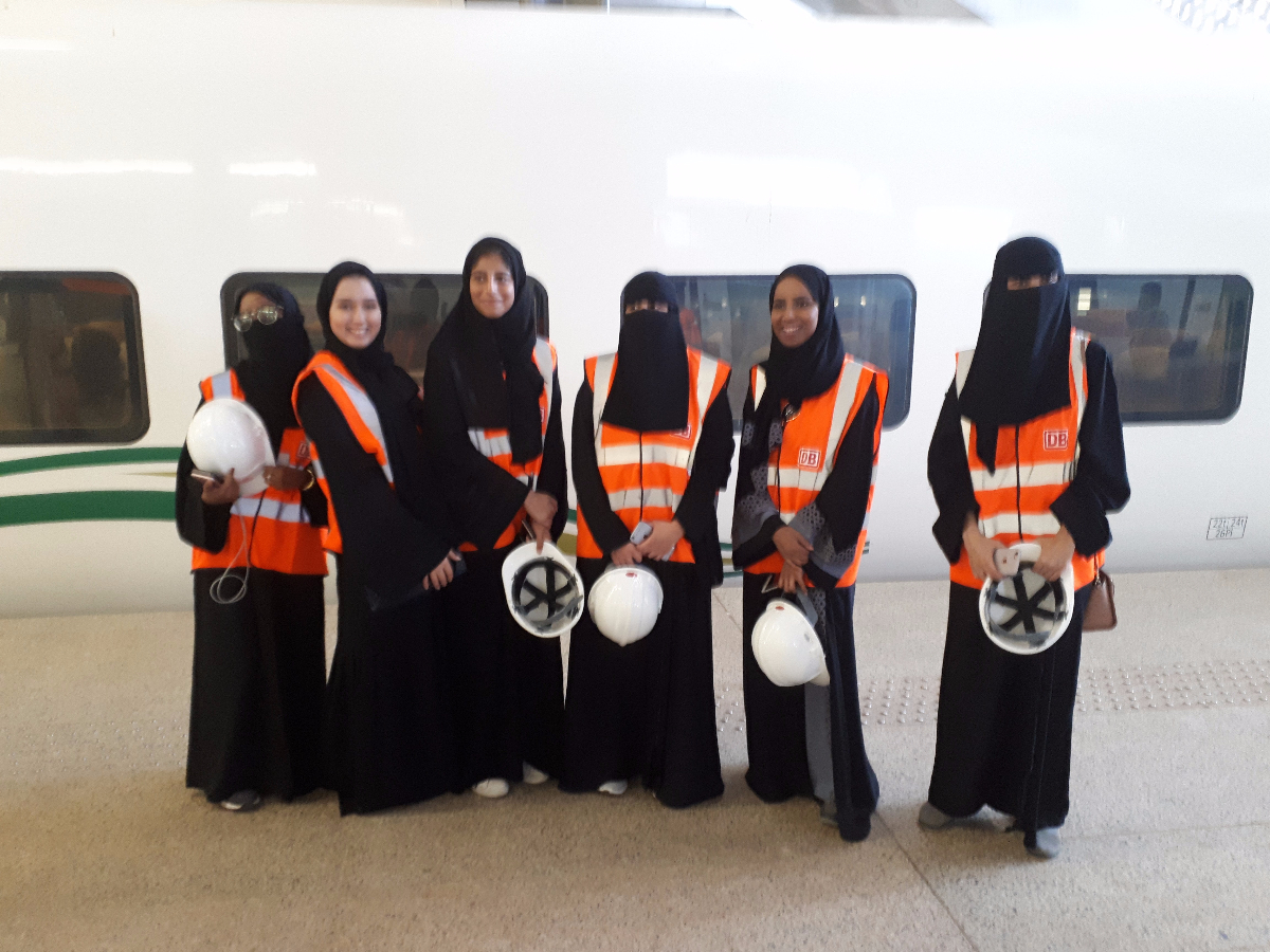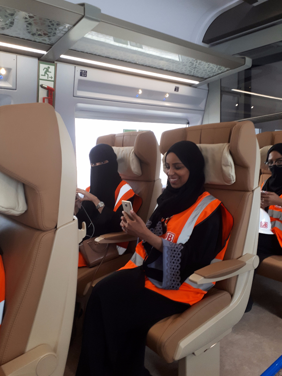 Alsook sommige photos van mijn 6 stagaires. Inderdaad 6 studentes van de Universiteit in Jeddah die nog nooit een trein van dichtbij hebben gezien (ze zijn 23 jaar jong) , laat staan meegreden en dit nog aan 200 Km/h in "the desssert".Pracht ervaring voor hen.