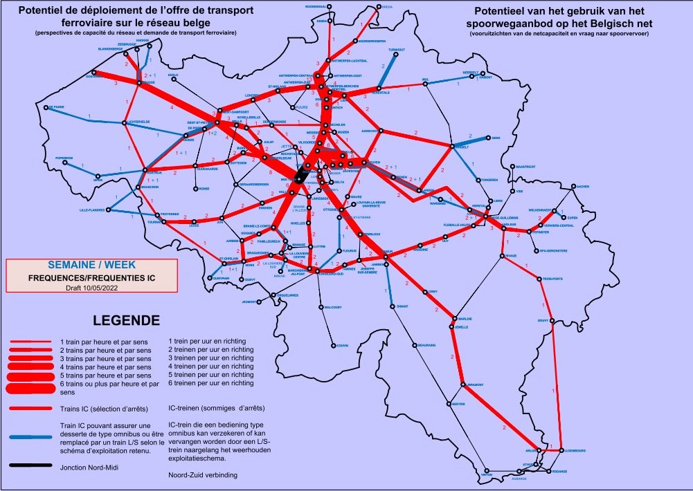 Ah ja, ik heb idd al meerdere tabellen en kaartjes gezien maar zal ze nog eens verder bestuderen, want heb er meerdere vragen bij...desirootje schreef: ↑20 jan 2023, 21:24Dat was een misinterpretatie van mij. Het kaartje toont in het blauw IC's met een S/L achtige service / IC's die vervangen kunnen worden door S/L treinen. Dat kaartje zegt dus dat er een extra trein Landen-Genk komt maar niet van waar, achteraf gezien lijkt het eerder een splitsing ter hoogte van Landen te zijn voor de 17xx, gemakkelijker dan vroeger met de nieuwe M7's die er al op worden ingezet en die men in Genk ook al kent.Floris Cappelle schreef: ↑20 jan 2023, 20:47 Beste,