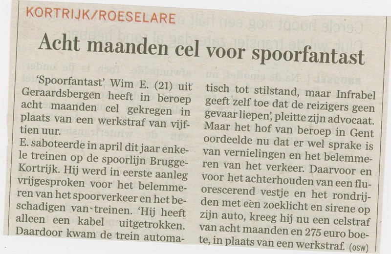 Voor zover wij weten heeft hij maar een kleine 2 weken kunnen toeslaan en iedere keer op de zelfde trein omdat hij deze nam om naar huis te gaan. En toen ging het niet over de remleidingen maar over de treinkabels.
