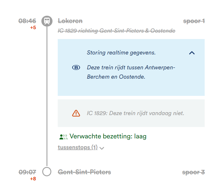 Grappig detail: in de NMBS-app & HyperRail en andere stond deze trein als afgeschaft.