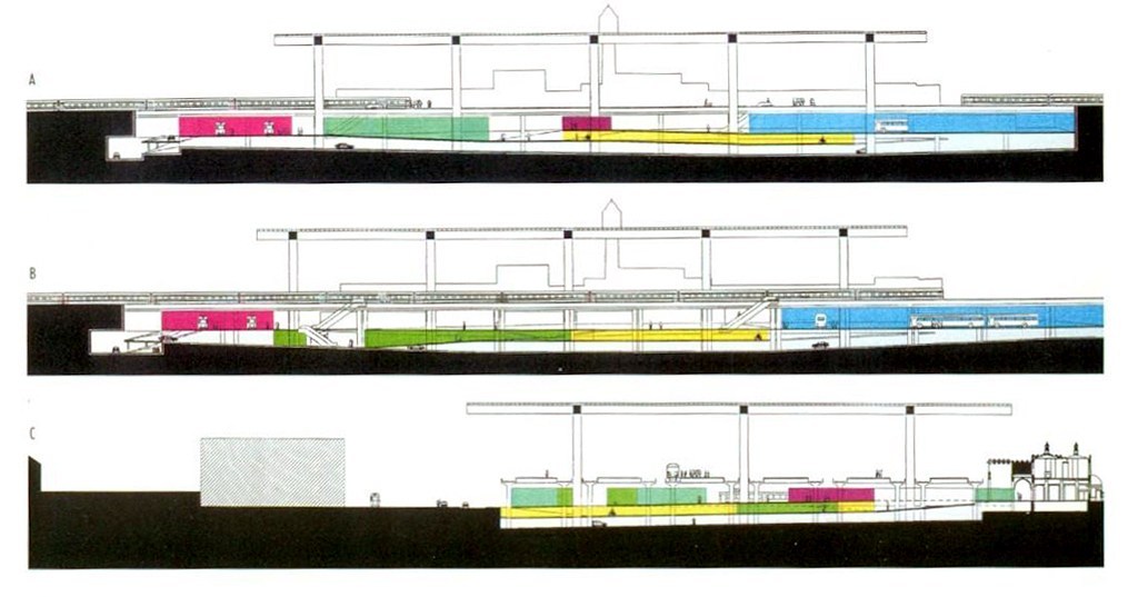 Visie van architect Xaveer De Geyter uit 1999 over de toekomst van het station Gent-Sint-Pieters ( Copyright Xaveer De Geyter)