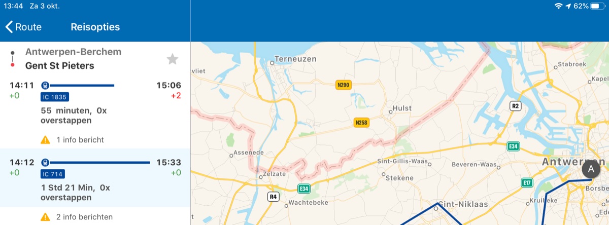 Antwerpen-Oostende rijdt nonstop Berchem-Gent via Mechelen.