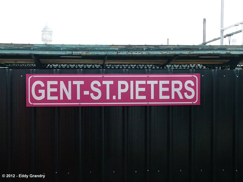 Eergisteren zag ik in Gent Sint-Pieters op het vernieuwde spoor 12 dit stationsbord in een raar kleurtje. Is dit een voorlopig bord of een nieuwe trend? :) :) :)