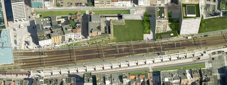 vanuit onze balkon zien wij antwerpen-centraal. Op de overkant, tussen Plantijn-Moretuslei, de zoo en de van Immerseelstraat was er een verhoogd stuk (ruwweg driehoekig) met wat gras op. Nu wordt er gebouwd (http://www.ilovelife.be/m/project.php?p ... =Antwerpen). Op de computersimulatie (en bij het voorbijwandelen) ziet men ook nog een stuk steunmuur.