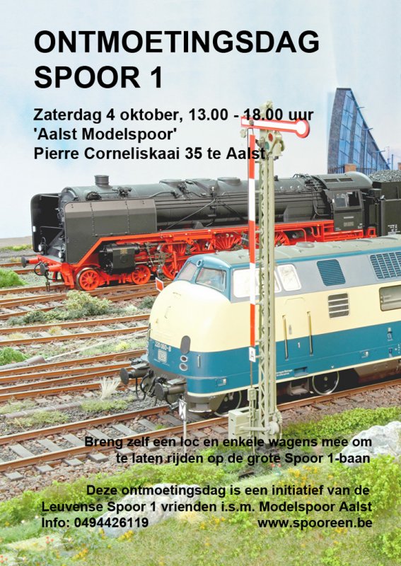 Op zaterdag 4 oktober , tussen 13.00 en 18.00 uur ,ontvangt “Aalst Modelspoor” ,Pierre Corneliskaai 35 te Aalst ,al onze Spoor 1 vrienden uit alle hoeken van ons landje en uiteraard ook van verder.