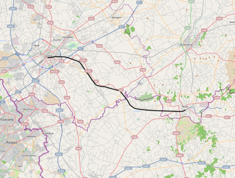 Lijn 83 Ronse - Kortrijk https://nl.wikipedia.org/wiki/Spoorlijn_83