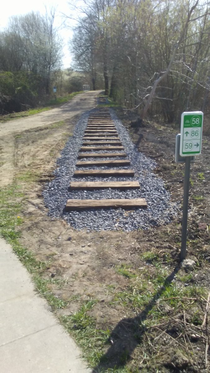 Als herinnering aan de spoorlijn naar Scherpenheuvel heeft men ingekorte dwarsliggers geplaatst.