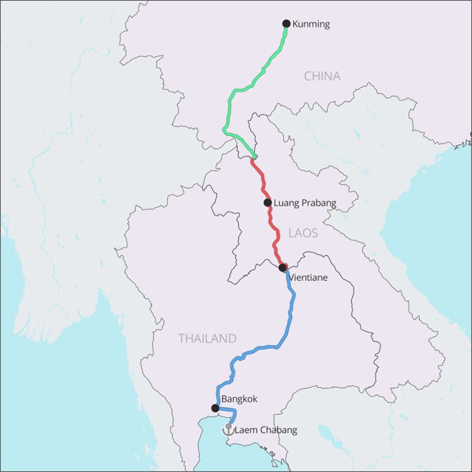 Is de lijn van China door Laos niet zeer recent geopend? Tussen Thailand en China is er volgens mij geen spoorverbinding.