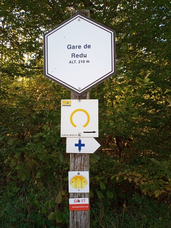 Mooie wandeling op deze zonnige herfstdag, 13 km van Daverdisse naar Chanly over de GR129, met onderweg sporen van de voormalige tramlijn Wellin - Graide. Tussen Porcheresse, Daverdisse en 'Gare de Redu' werd op de bedding een RAVeL aangelegd, en in de buurt van de 'Gare de Redu' wandel je over de gerestaureerde oude trambrug over de Lesse. Opmerkelijk: de 'Gare de Redu' lag op 5 km van het dorp Redu. Het feit dat ze een telegrafische afkorting had (MDU) laat vermoeden dat er ooit een stationsgebouw moet zijn geweest, maar daar heb ik nog nergens een bewijs van kunnen vinden.