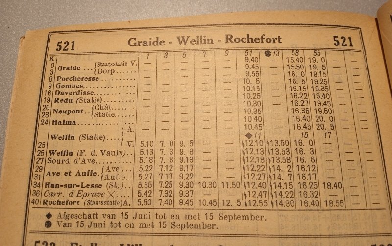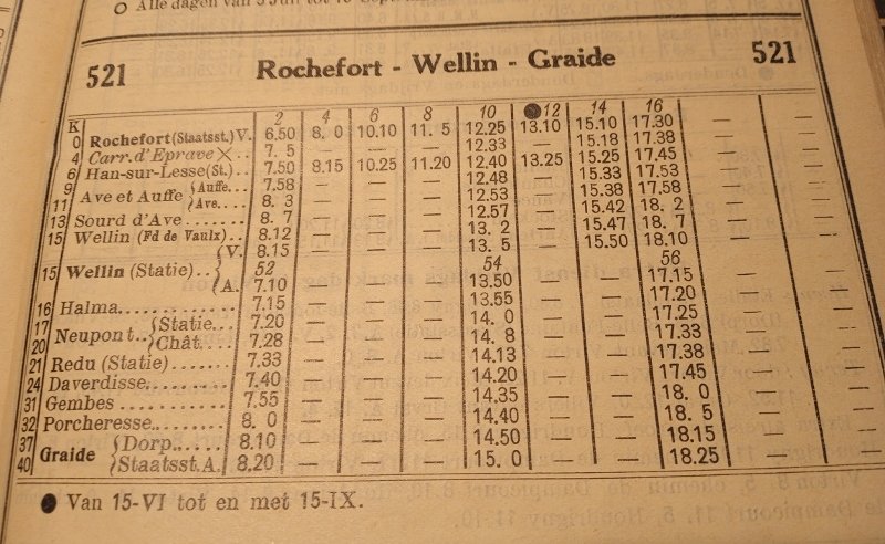 De heenreis was als volgt gepland: Sint-Niklaas 07:24 - Brussel-Noord 08:30 / 08:44 - Namur 09:43 / 09:55 - Beauraing 10:55 / Beauraing Institut 11:43 - Daverdisse Centre 12:08.
