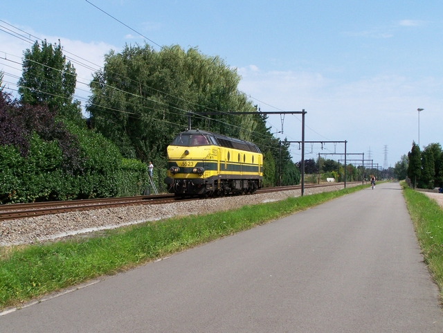 DE 5523 rijd los naar zijn thuisbasis Antwerpen-Noord, hij zal waarschijnlijk net los terugkeren van Genk.
