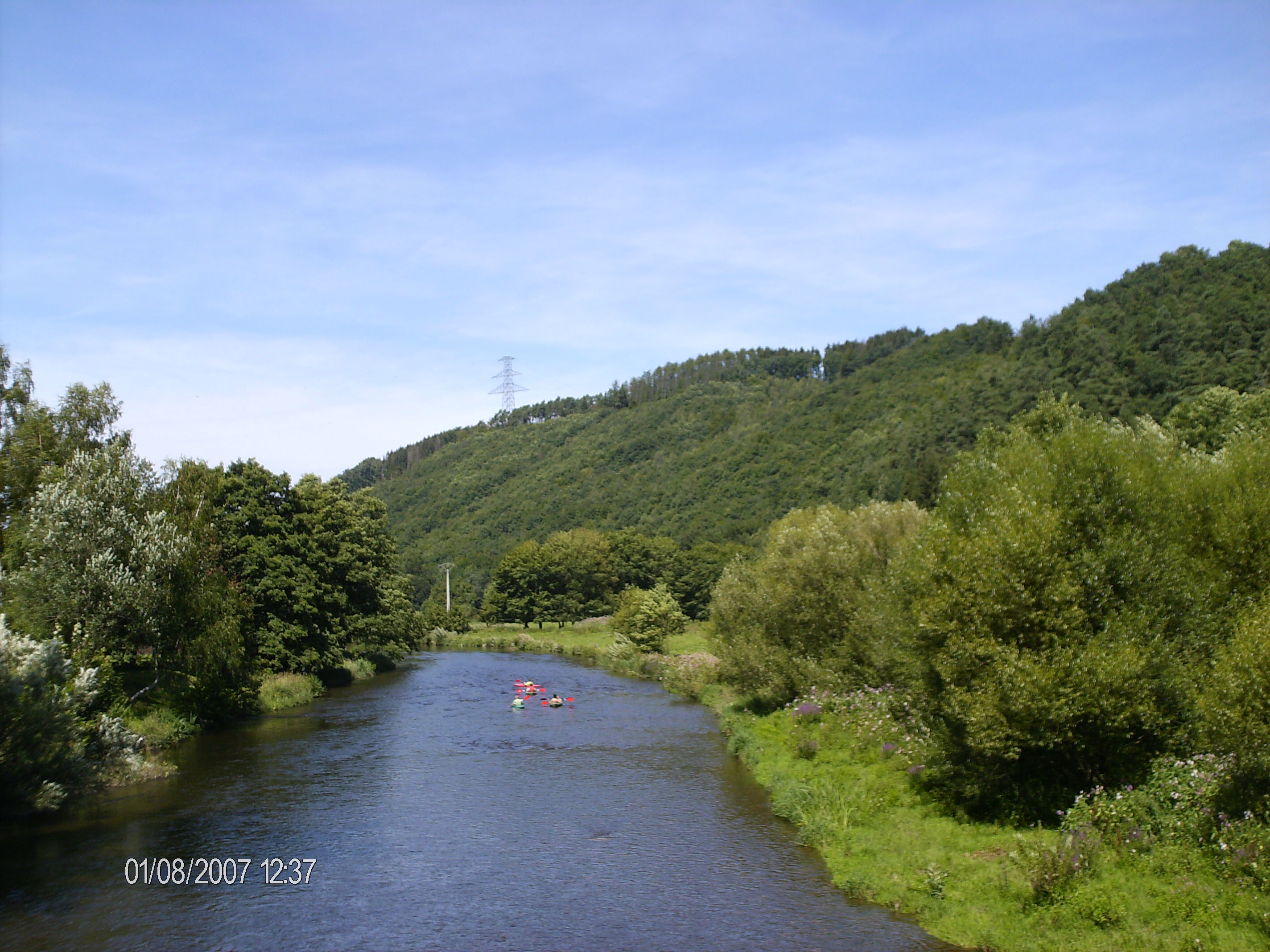 En daar is hij dan, de Ourthe! Met bijhorende kajaks! :-p