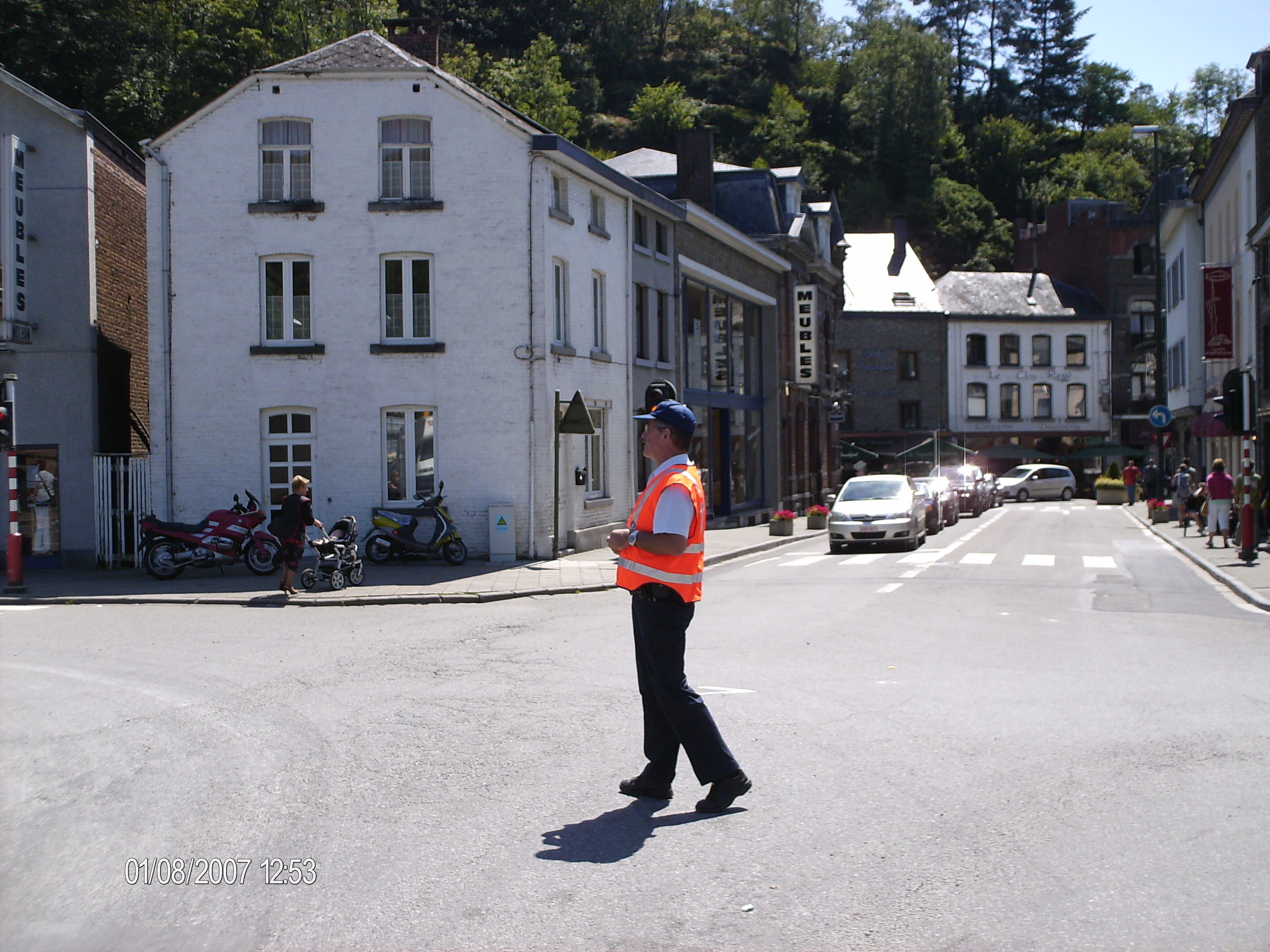 Te La Roche is het tijd voor de middaglunch. We worden aan het kruispunt nog even opgehouden door de doortocht van de Tour de Wallonie.