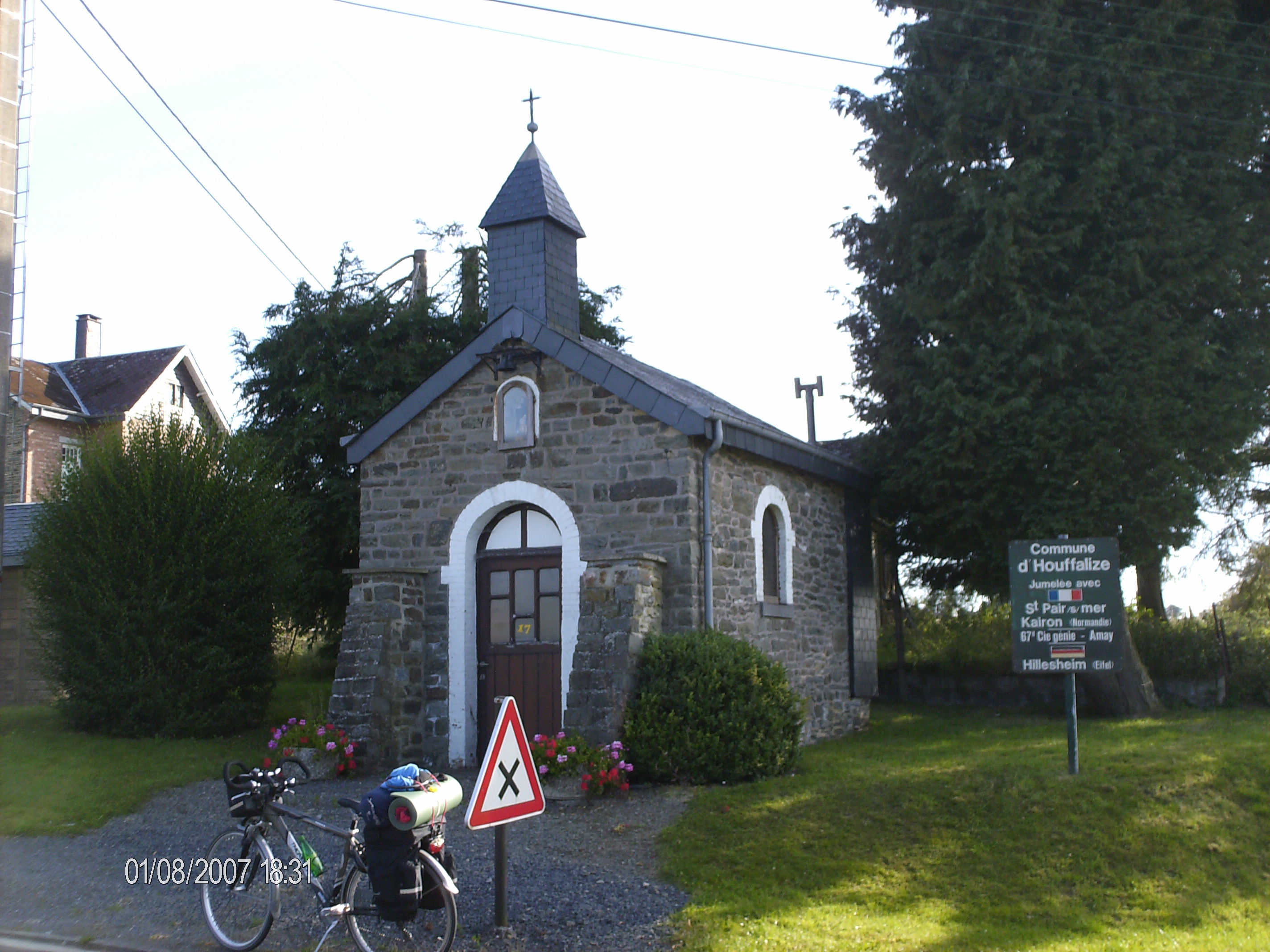 Het laatste Belgisch kappelletje op ons traject waakt over het kruispunt.