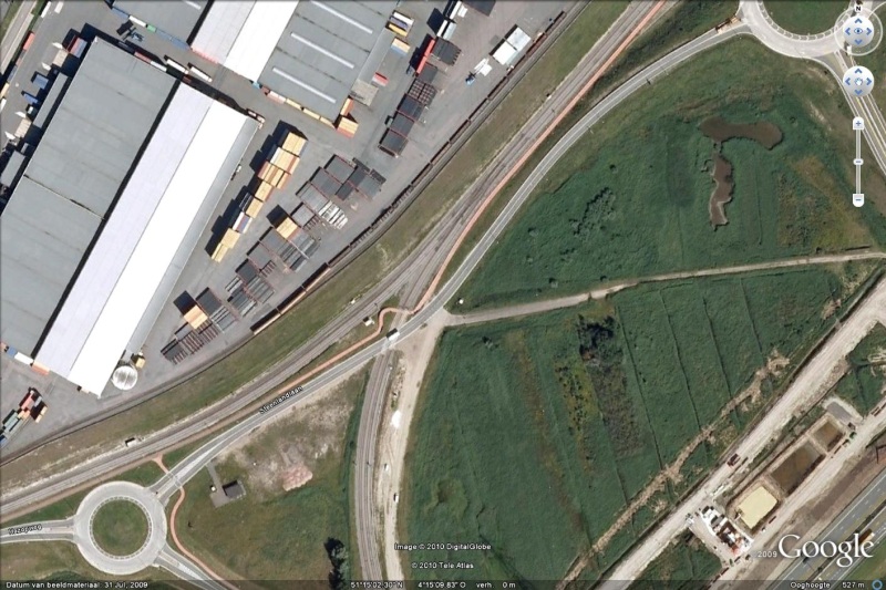 Ja klopt, de witte vrachtauto op de luchtfoto rijdt op die brug denk ik en daarvoor zie je nog een smallere weg die eerst een bocht maakt en dan over het spoor gaat.